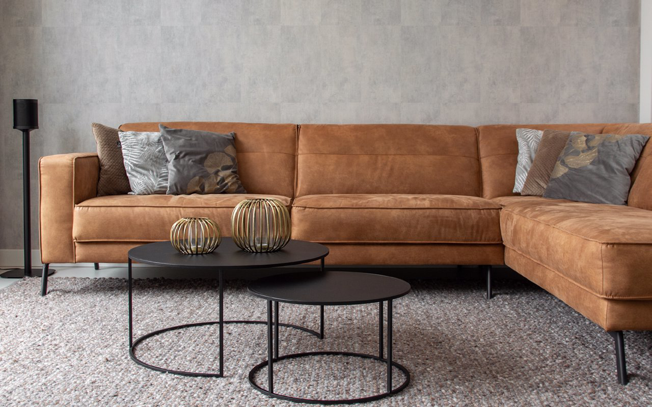 Broadly speaking, we make a distinction between textile and microfibre furniture (L60). The latter is a combination of 60% leather with microfibre. It has the look of sanded leather, but feels smooth and soft.