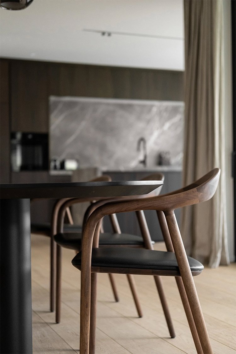Bar stool Neva Light almost seems made for this kitchen. Its refined design is chic, stylish, and soft! It fits perfectly with her dining chair variant, and the custom dining table, of course!