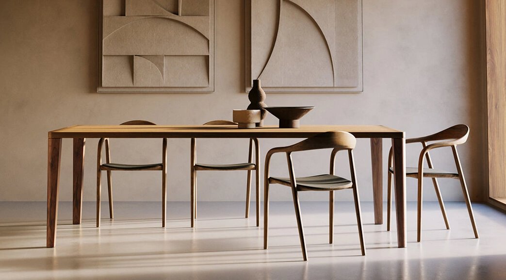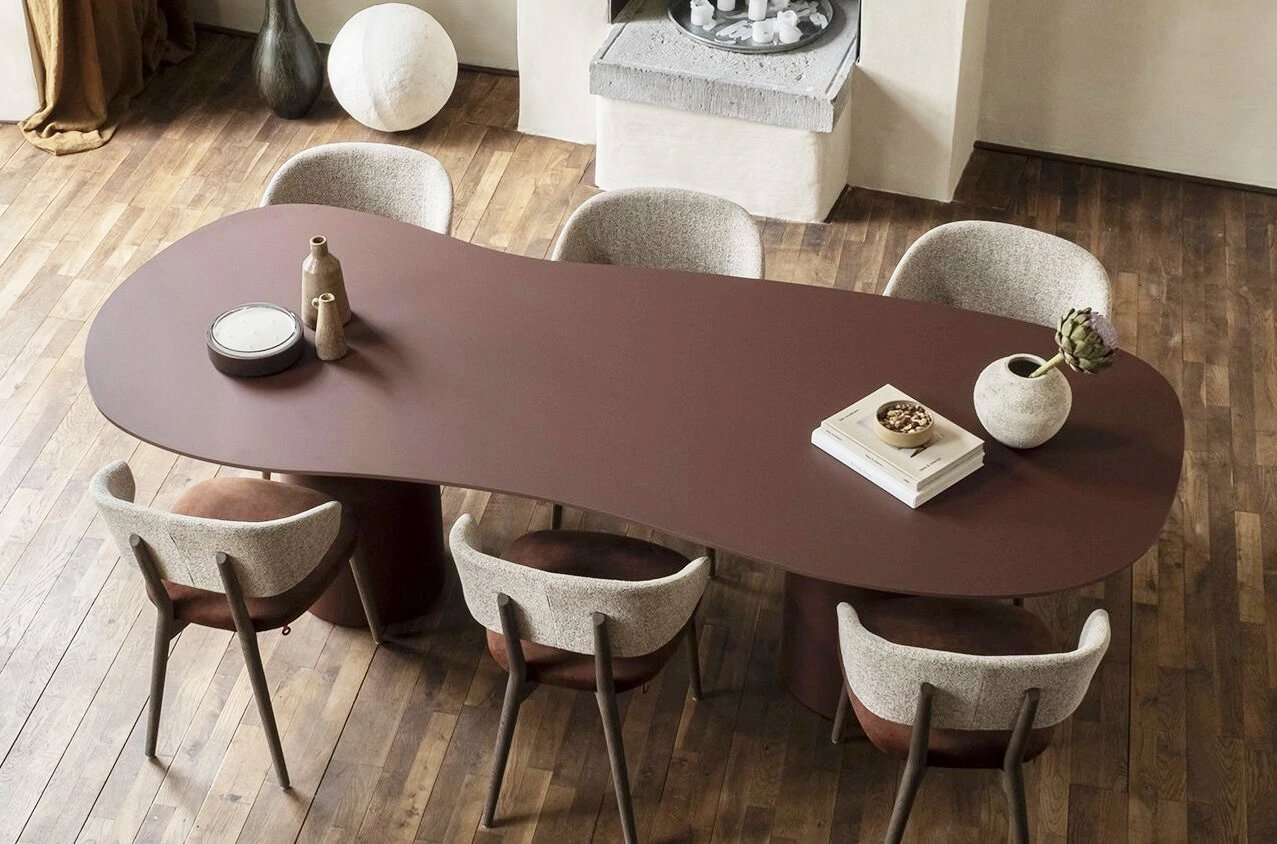 One of the current trends is the organic shape. These shapes can be found in nature and lend themselves perfectly to the shape of a tabletop. The best example is our pebble-shaped oak table.