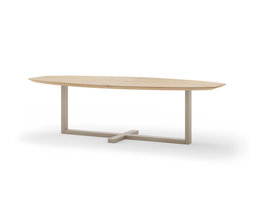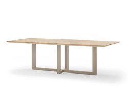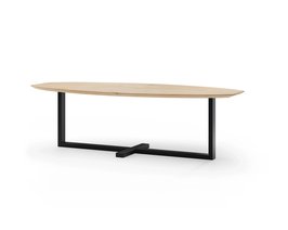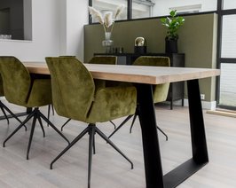 A rectangular table can easily be combined with a variety of frames, which we all make in our own workshop. Think of legs on the head sides so that your feet aren't bothered by anything, or a central leg frame which allows you to optimally make use of the entire length of the table. With legs on both head sides, you can also determine their distance to the edge of the table.