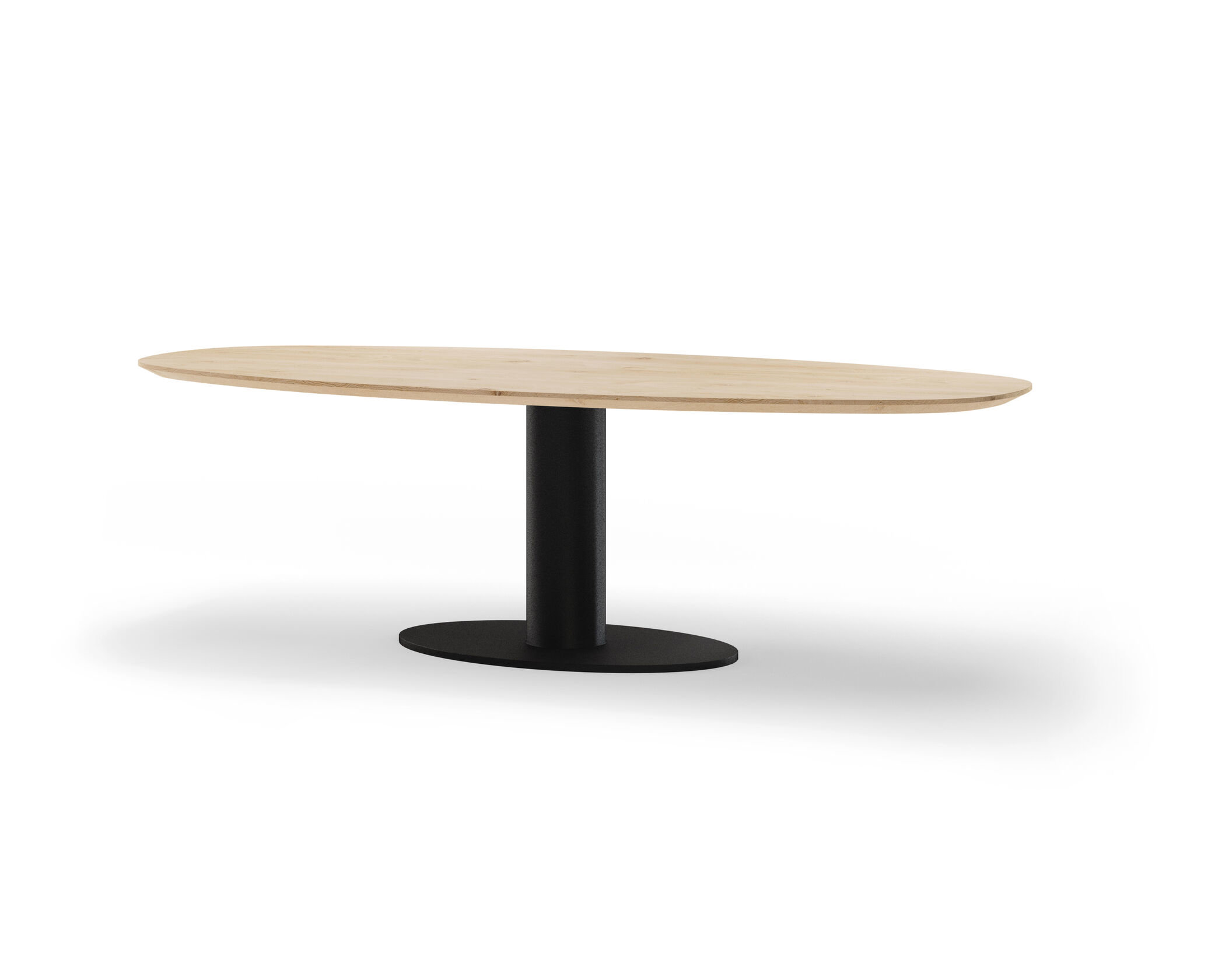 Just like a standard oval table, a Danish oval table is widest in the middle (this is also the width you find in the measurements). The difference, however, lies in the course of the shape towards the end sides. 20 cm from the end sides, the table is 40 cm narrower than it is in the middle. Where the shape of a standard oval table runs towards a point, the Danish oval shape ends in a flattened, almost rectangular corner! That's how you easily fit an extra chair at the end sides! Check out our other Danish oval tables for more inspiration.