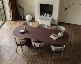 The dolop shape is currently available in two different materials: oak and Phoenix Unicolour. Our oak wood is of excellent quality and we are proud that you can also make your own choices in this area. So we have three different types of oak and 11 different colours for you. Fenix Unicolour is a beautiful material with which you can go in many directions. Fenix is easy to clean and available in many colours so you can perfectly match the table with the rest of your interior. Would you like to know more about the materials we work with? Then check out our pages on oak and fenix. Extra tip: we also sell dining chairs.