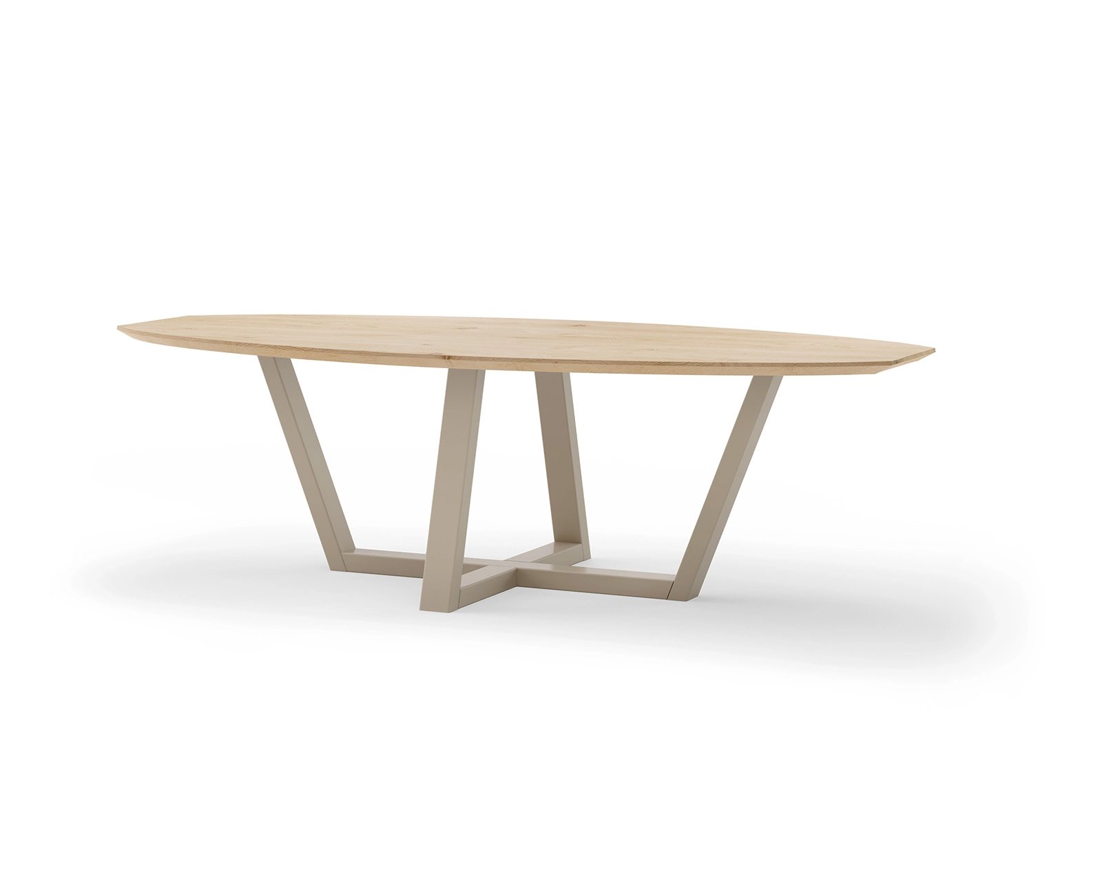 Custom semi-oval oak dining table W-frame, various colours and sizes.