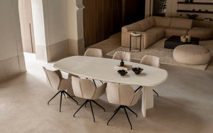 Round and oval dining tables are known for their old-fashioned conviviality. Due to the lack of straight lines, no one sits exactly side by side. That makes it easier to see each other and enjoy a good conversation. Delicious food, an evening drink or a game: an oval dining table makes it even more sociable.