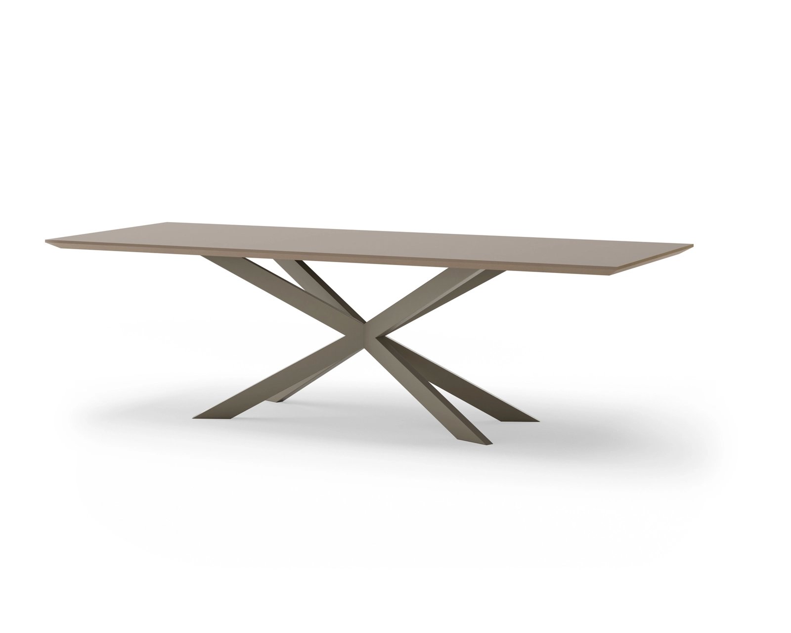 Custom rectangular Fenix Unicolor dining table, available in different colours, steel Gap frame.