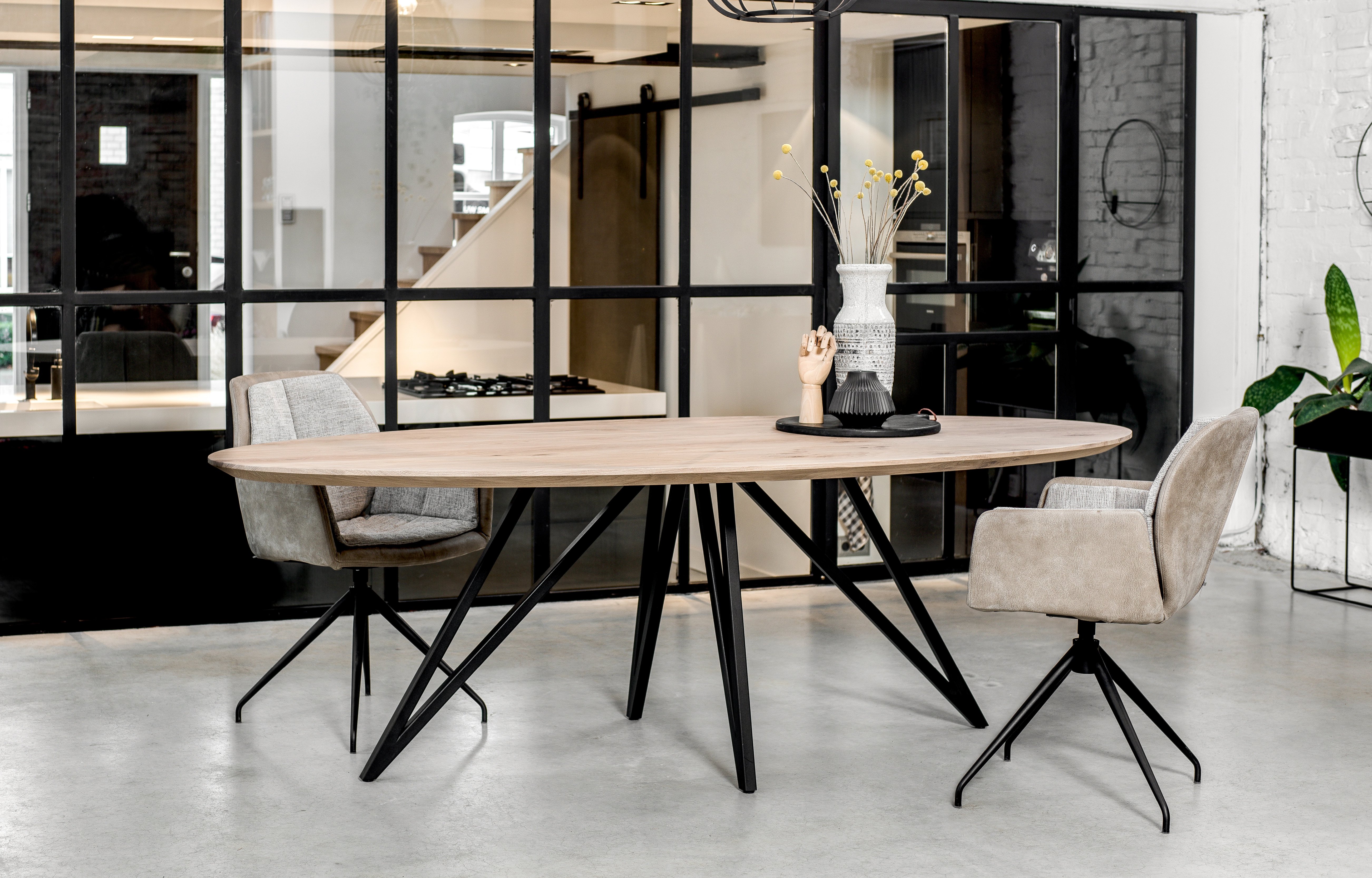 Kies de juiste vorm zodat de ovale tafel een waardevolle eyecatcher vormt in jouw interieur. De herkenbaarheid van de ovale vorm staat bij alle opties nog steeds centraal, maar is er zo een oplossing voor ieder interieur.