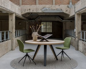 Wil je meteen een volledige set? Combineer je ronde tafel dan met stijlvolle stoelen of een eetbank. Je kiest elk stuk afzonderlijk — qua stof, kleur en onderstel — zodat alles mooi op elkaar is afgestemd. En als je tafel en zitmeubel tegelijk bestelt, krijg je 5% korting.