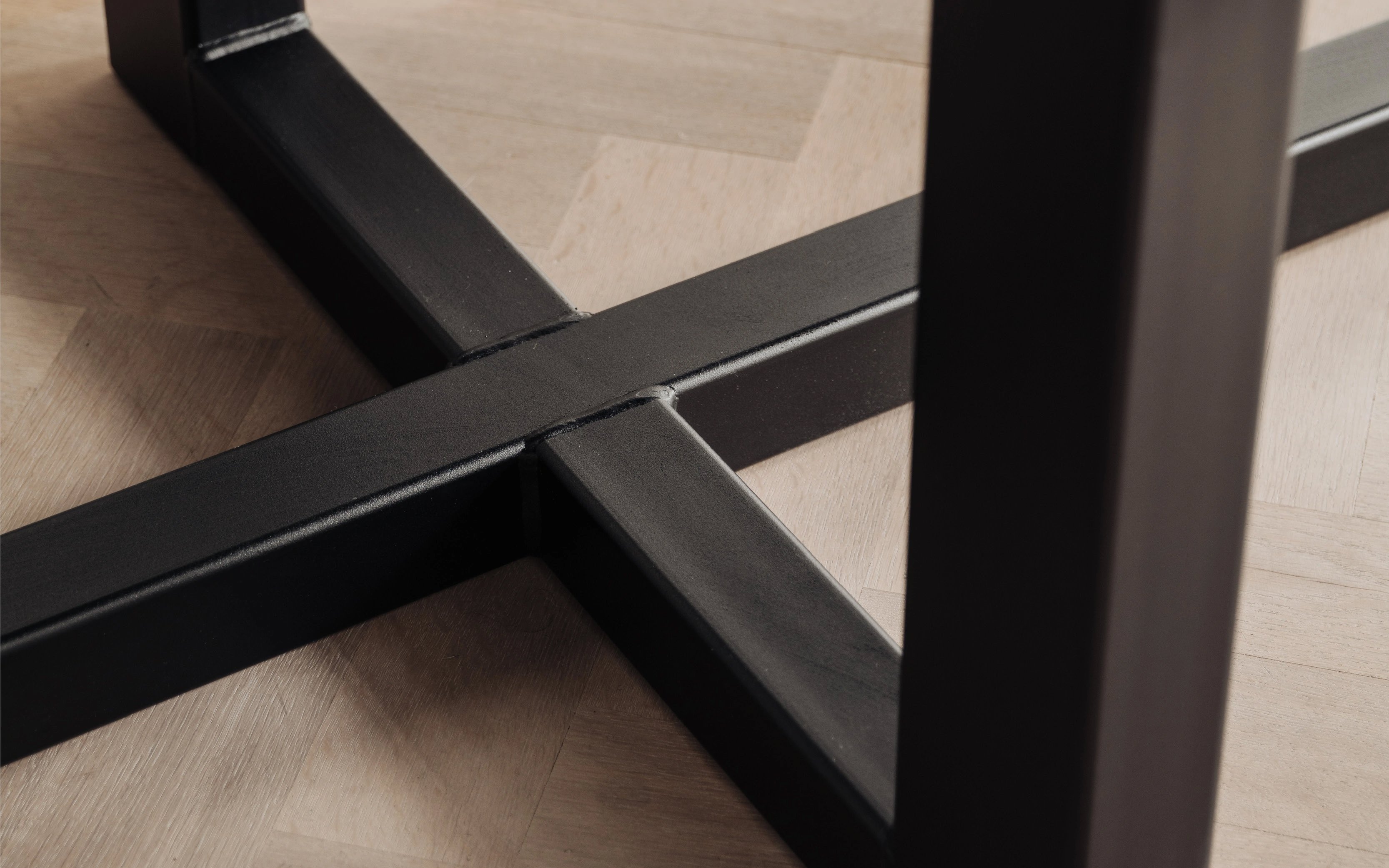 Onze houten onderstellen krijgen dezelfde afwerking als de tafel, waardoor ze in kleur overeenkomen en ook net zo goed zijn beschermd.