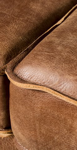 Buffelleder is een stoer en robuust leder wat gemaakt wordt van de huiden van waterbuffels. Deze waterbuffels zijn behaarder dan normale koeien, waardoor de haarvaatjes goed te zien zijn als het leder gespannen staat. Dit leder wordt met de hand in gepoetst. Na enkele jaren kan op sommige plekken de witte ondertoon van het leer wat meer zichtbaar worden, dit is inherent aan dit leder.