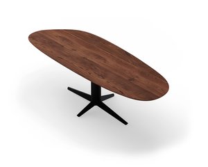 Leaf is een organische vorm en dat wil zeggen dat je een a-symmetrisch tafelblad in huis haalt. De leaf is wel de vorm die het dichtst bij een standaardvorm in de buurt komt. Deze vorm heeft namelijk veel weg van een ovale eettafel, maar dan nét iets anders. Dit betekent wel dat je de ovale vorm goed als uitgangspunt kunt gebruiken als je het aantal stoelen gaat bepalen. Lees bijvoorbeeld onze blogs over ovale eettafel voor 6 personen of ovale eettafel voor 8 personen om de juiste maat te ontdekken. Tip: bekijk onze andere organische eettafels ter inspiratie.